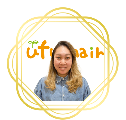- 経歴:美容師歴10年・スタイリスト歴5年。1店舗を経て、ウフヘアーのオープニングスタッフに。2019.5より第一子出産のため産休、2020.6より復帰いたしました。